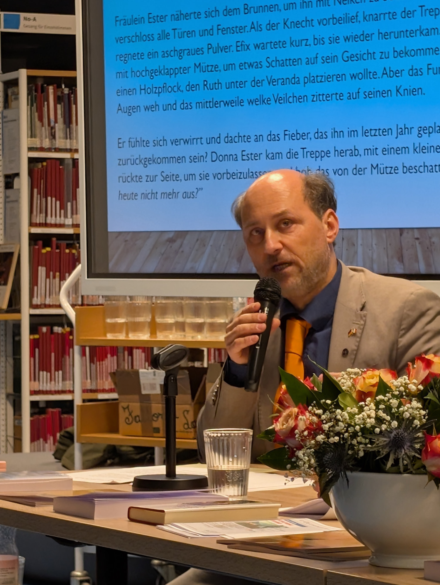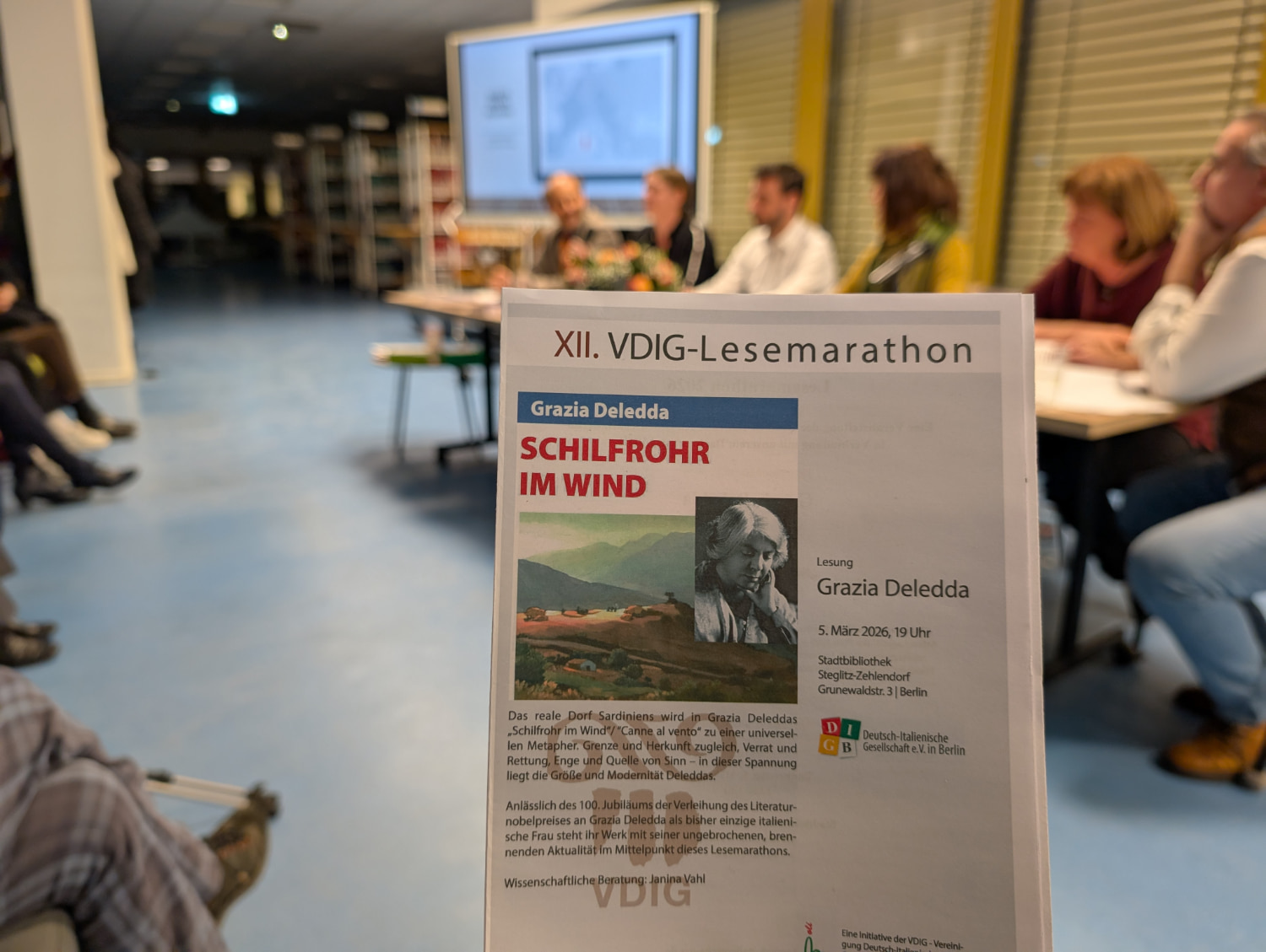 Seit 9 Jahren richten wir den jährlichen Lesemarathon aus, der von der VDIG – Vereinigung Deutsch-Italienischer Kultur-Gesellschaften e.V. initiiert und konzipiert wird. Begonnen wurde diese Reihe mit Umberto Ecco. In diesem Jahr haben wir uns dem Schriftsteller