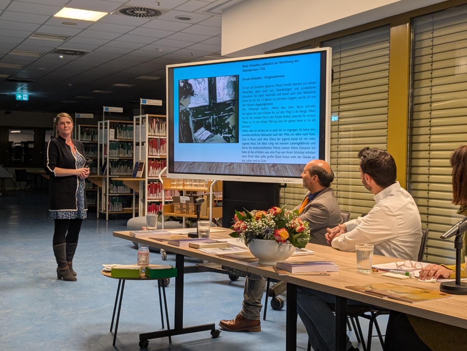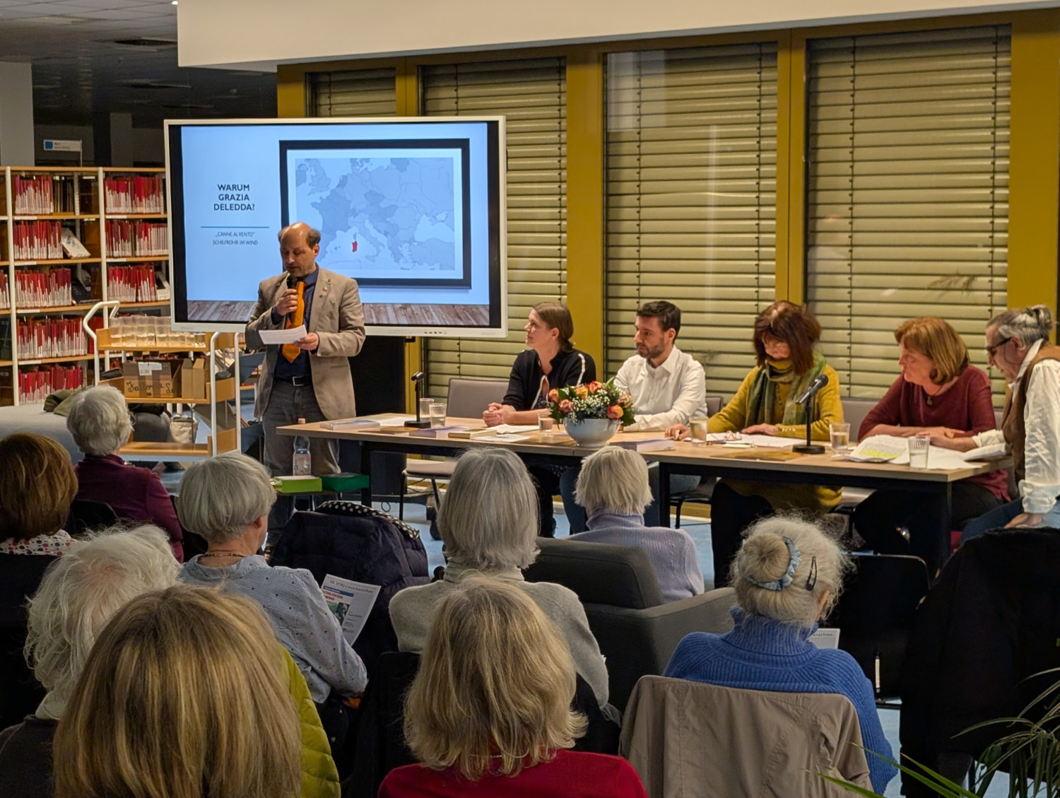 Nach einer aufschlussreichen Einführung zur Person, zum Werdegang und zur Bedeutung Camilleris in der italienischen Literatur brachte uns Frau Dr. Bravi an Hand von den von ihr ausgewählten Textpassagen sein Werk nahe.